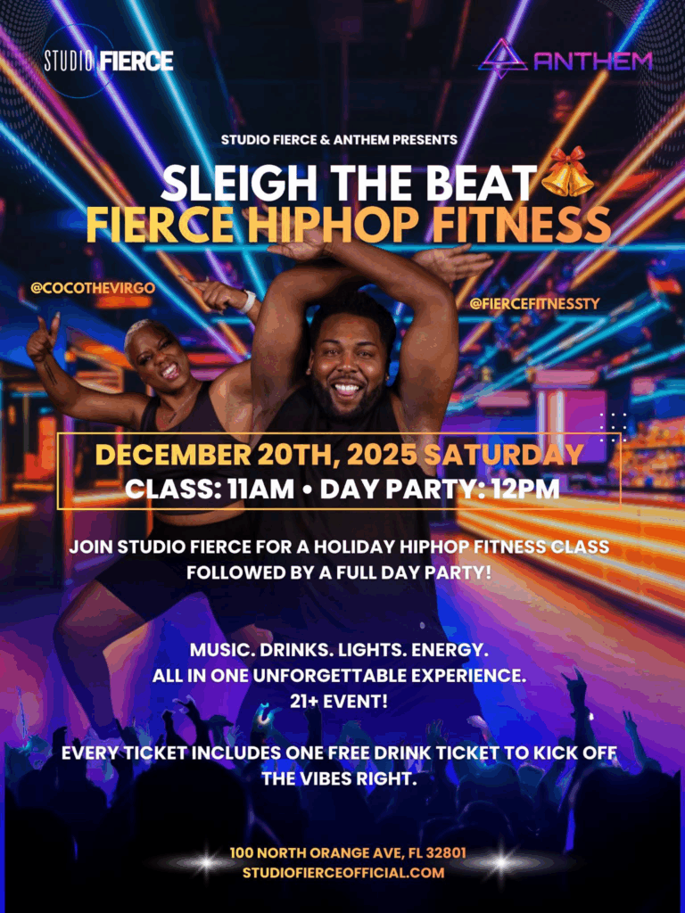 Sleigh the Beat: Fierce Hip Hop Fitness is taking over Anthem for one massive holiday showdown of sweat, beats, and pure joy. Studio Fierce is bringing the heat with an explosive hip hop fitness class led by @CocoTheVirgo and @FierceFitnessTy, followed by a full day party that keeps the energy soaring from noon until you tap out.