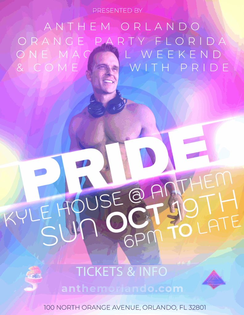 All good things must end, but at Anthem Orlando, we make sure Pride goes out with a bang. On Sunday, October 19, 2025, starting at 2 PM and going late into the night, join us for the Official Orlando Pride Closing Party, the grand finale to an unforgettable weekend. Behind the decks, DJ Chris Sugden and DJ Kyle House will deliver a pulse-pounding set designed to keep the dance floor alive until the very last beat. Anthem’s state-of-the-art sound and lighting will be elevated even further by our production partners, Orange Party Florida, known for creating some of the most dynamic LGBTQ+ nightlife experiences across the state. With their expertise in staging, lighting, and large-scale event production, they’ll help transform Anthem into a full-scale Pride spectacle.